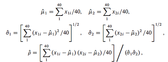 rho = lambda s: np.mean((s[:,0] - mu1(s))*(s[:,1] - mu2(s)))/(s1(s)*s2(s))But we dont. So we shall follow an iterative process to find them.