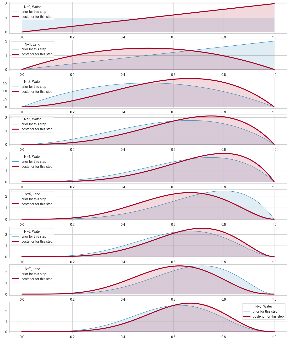 posterior_params = prior_params + np.array( water ) # posteriors beta parameters