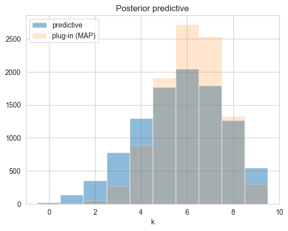 postpred = np.random.binomial( len(data), samples);postpredarray([7, 9, 5, ..., 4, 5, 1], shape=(10000,))