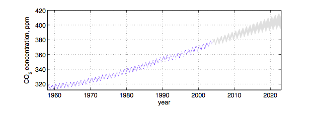 This is not the only place where parametrics may not be expressive enough. Consider for example a somewhat periodic time series with a more complex behavior and correlation structure than we find, for example, in a time series model, for example, in the not so fake global warming CO2 time series below: