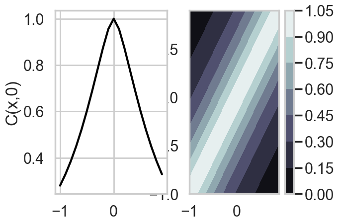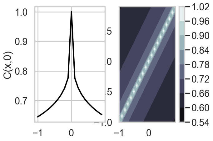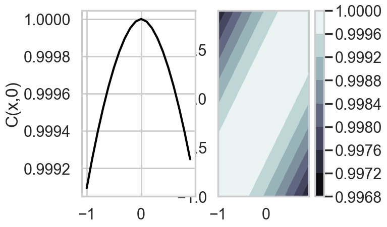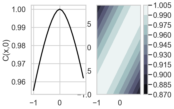 plt.ylabel('C(x,0)')do_plots([0.01,0.1])/var/folders/wq/mr3zj9r14dzgjnq9rjx_vqbc0000gn/T/ipykernel_98467/1206917154.py:57: RuntimeWarning: invalid value encountered in multiply