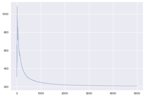 plt.plot(range(len(cost2[-10000:])), cost2[-10000:], alpha=0.4);