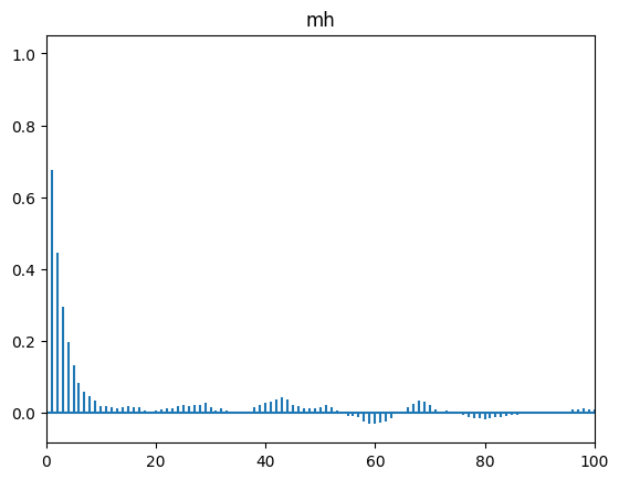 Here we see that the MH acceptance ration is much lower and the correlation much higher!
