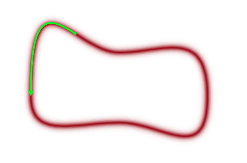 But this then leaves us with the problem of having to go from one level-set to another: after all, we wish to explore the entire typical set. The solution to this is simple..after exploring a given level set for a while, we resample the momentum, and off to another level-set we go, as illustrated below: