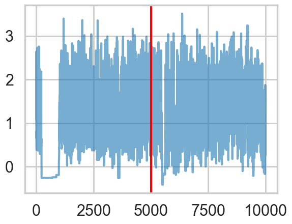 plt.axvline(5000, color="r")