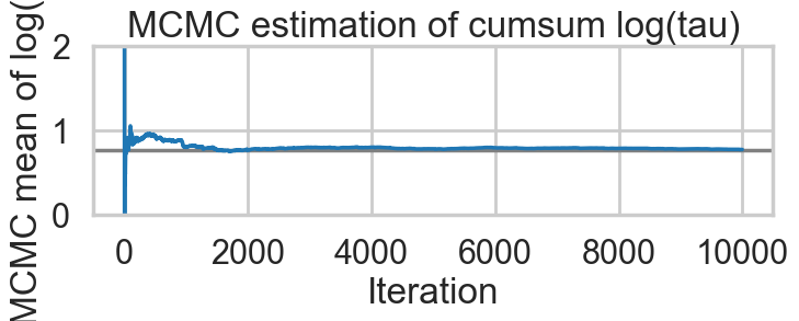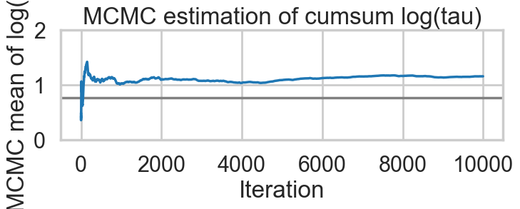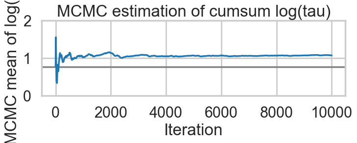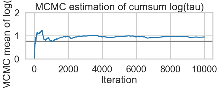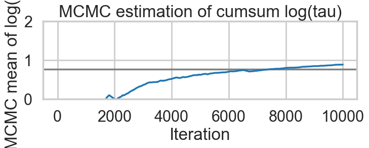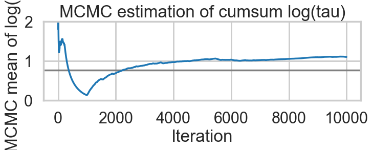 plt.title('MCMC estimation of cumsum log(tau)')biasplot(idata1)