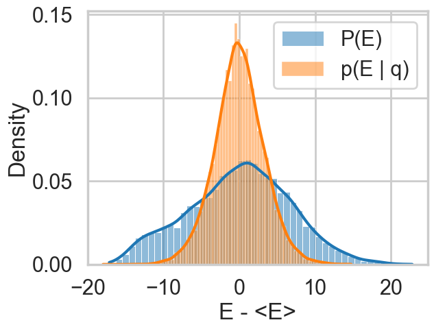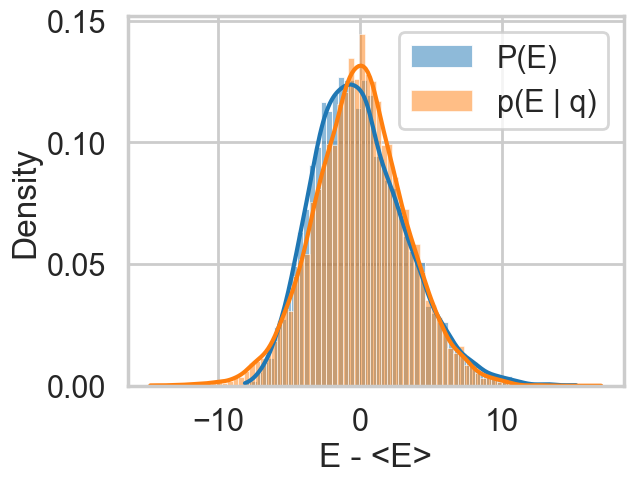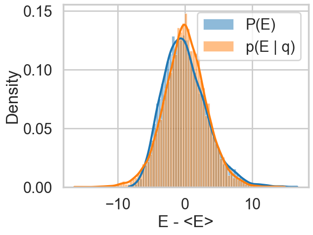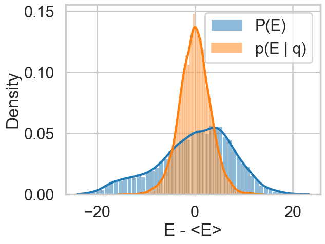 plt.xlabel("E - <E>")So let us see this for our original trace