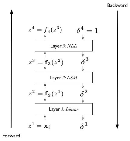 \[z^4 = NLL(\v{z}^3) = NLL(z^3_1, z^3_2) = - \sum_i \left( \mathbb1_1(y_i)z^3_1(i) + \mathbb1_2(y_i)z^3_1(i) \right)\]