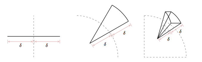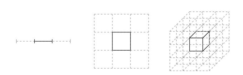 In multiple domensions, volume elements get smaller and smaller…the curse of dimensionality. This can be seen in the diagram :