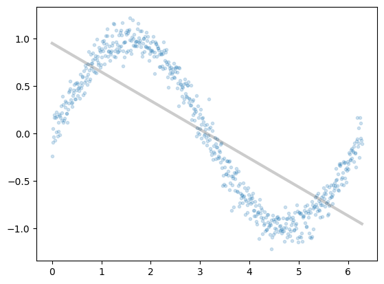 plt.plot(x,est.predict(x.reshape(-1,1)), 'k-', lw=3, alpha=0.2);
