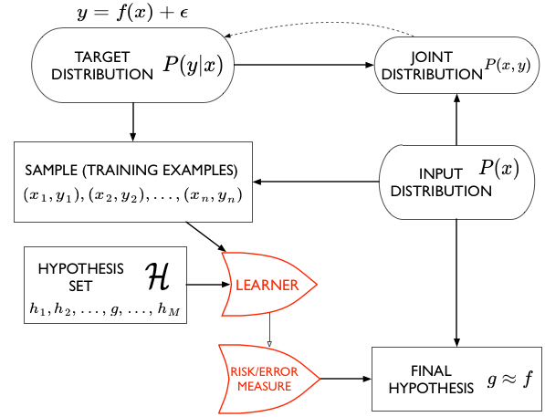 - you have learnt the basic formulation of the learning problem, the concept of a hypothesis space, and a strategy using minimization of distance (called cost or risk) to find the best fit model for the target function from this hypothesis space.