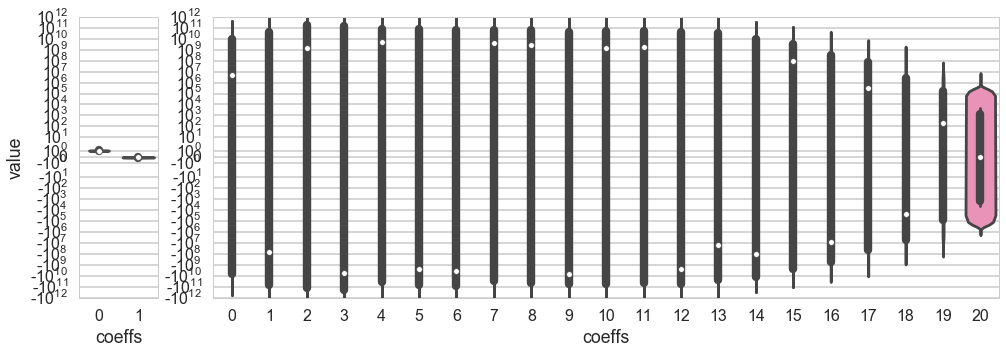 axes[1].set_ylim([-1e12, 1e12]);//anaconda/envs/py35/lib/python3.5/site-packages/seaborn/categorical.py:1791: UserWarning: The violinplot API has been changed. Attempting to adjust your arguments for the new API (which might not work). Please update your code. See the version 0.6 release notes for more info.