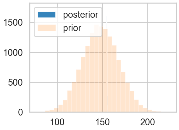 print("mu post", mu_post, "sig_post", sig_post)mu post 154.5942931576438 sig_post 0.4119936549295076