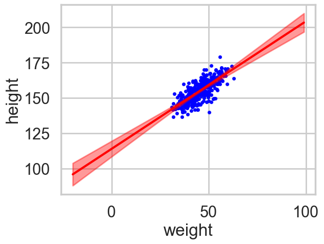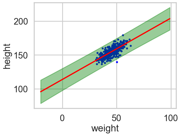 return postW, postMu, postCovariancedesign = np.concatenate([np.ones(n).reshape(-1,1), df2.weight.values.reshape(-1,1)], axis=1)