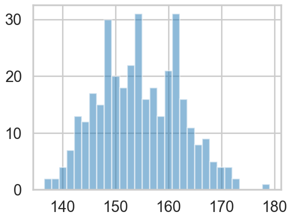 print("sigma", sig, "mu", mu_data, "n", n)sigma 7.73132668454304 mu 154.5970926136364 n 352