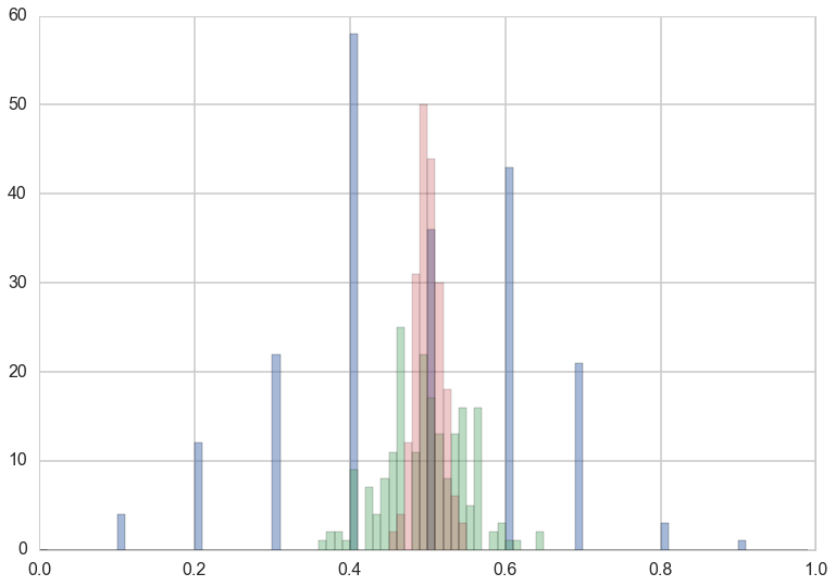 But some kind of answers differ only a little, especially as we get to larger sample sizes. So the important question then becomes one of the distribution of these quantities from sample to sample, also known as a sampling distribution.