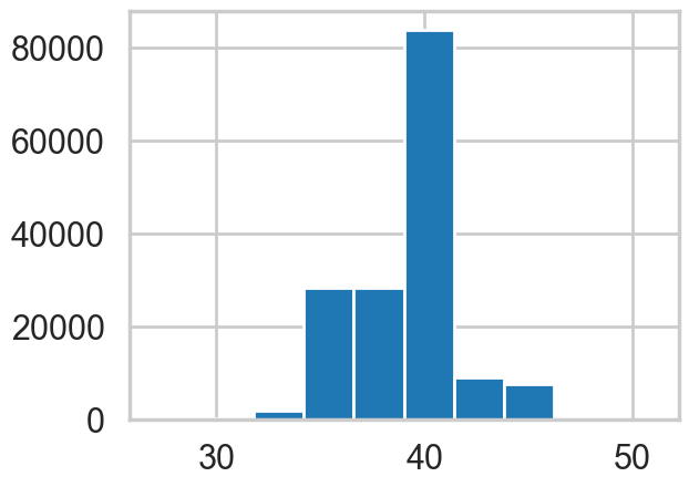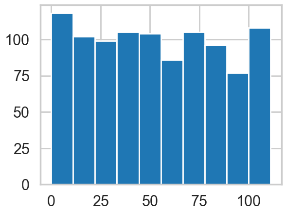 plt.hist(pm.draw(coaldis1['switchpoint'], draws=1000));