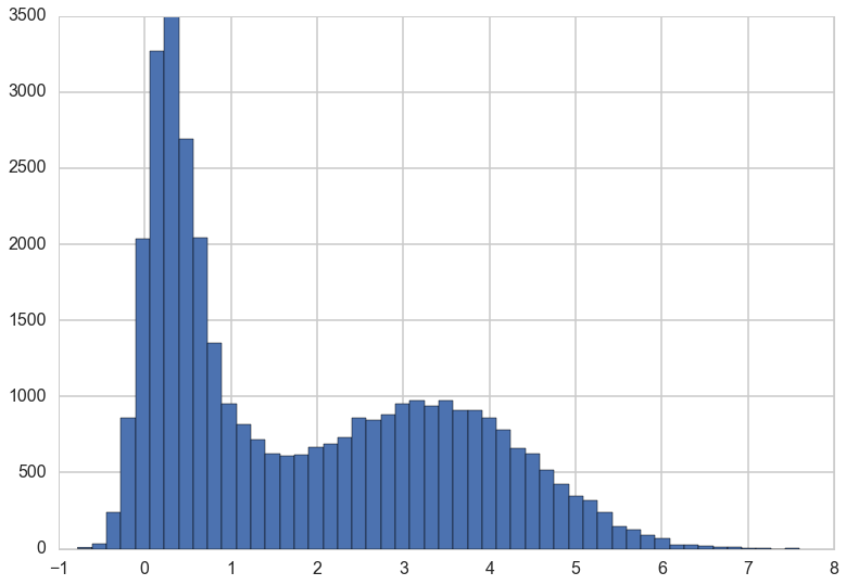 plt.hist(y, bins=50);
