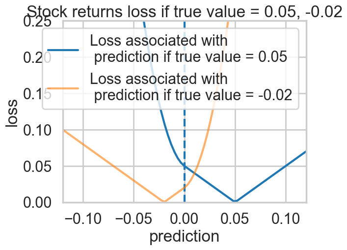 label = "Loss associated with\n prediction if true value = -0.02", lw =3)