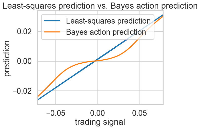plt.title("Least-squares prediction vs. Bayes action prediction")